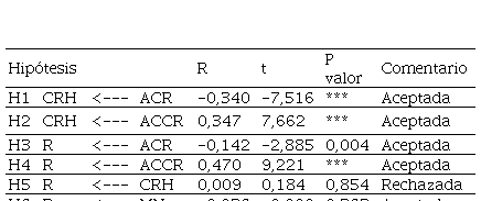 El instrumento estuvo compuesto de dos partes; la primera con 4 ítems, con respuesta de tipo nominal, con el fin de conocer los aspectos sociodemográficos de la población; y la segunda parte con 30 reactivos relacionados con los constructos propuestos, para el CRH y ACCR se tomó como referencia el cuestionario desarrollado por la Asociación de Estudios Psicológicos y Sociales (2008), todas con respuestas tipo Likert de 5 puntos (1= Nunca, 5=Siempre). El tratamiento de los datos se hizo a través del software SPSS v26 y Amos v24. En primera instancia, se desarrolló un análisis factorial exploratorio con el fin de observar la agrupación inicial de los reactivos frente a los constructos; seguido, se ejecutó un análisis factorial confirmatorio para validar la dimensionalidad de cada factor en el modelo; por último, a través de un modelo causal, se hizo un análisis Bootstraping para validar las hipótesis propuestas.