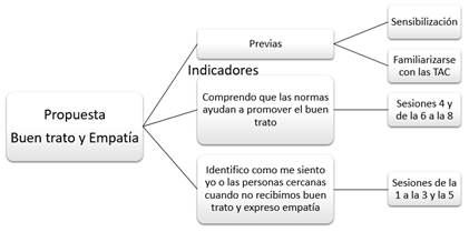 La estrategia didáctica de estos casos se llamó TAC para la solución pacífica de conflictos y contempló tres fases: sensibilización, interiorización y práctica. Con una duración en la ejecución de dos meses.
