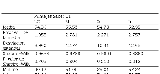 En cuanto a los datos analizados de la Prueba Saber 11, se muestran a continuación las características de los estudiantes, las diferencias estadísticamente significativas en las medias de los puntajes obtenidos por competencia y la correlación entre los puntajes.