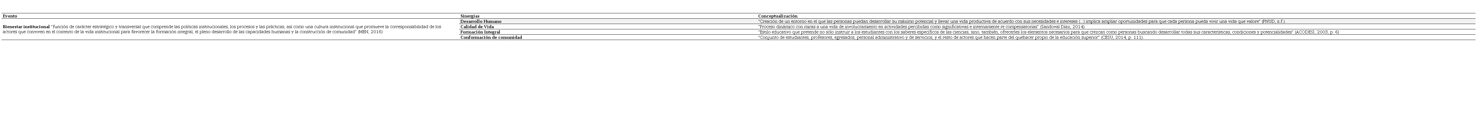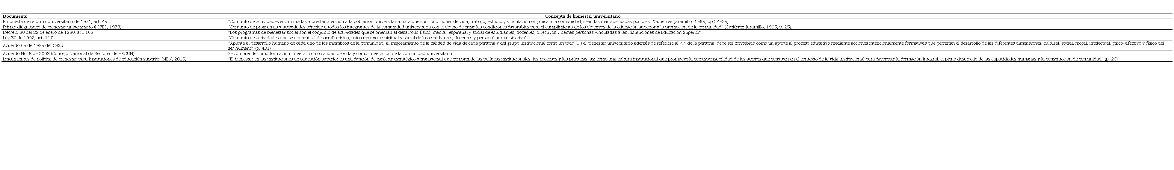 En la Tabla 1 se muestra la evolución del concepto de bienestar universitario desde la propuesta de reforma universitaria en 1971 hasta la fecha.