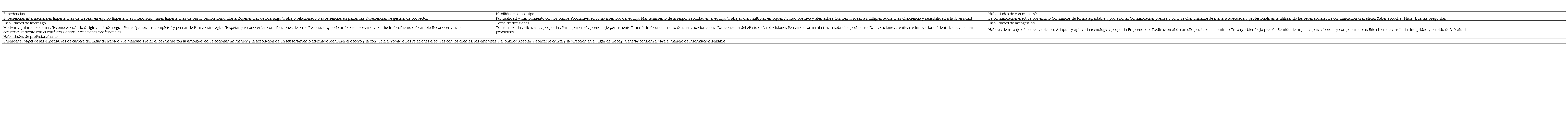 De igual manera, el instrumento de Crawford et al. (2011b) permite abordar siete núcleos experienciales/conjuntos de habilidades blandas, según una revisión exhaustiva de la literatura actual sobre aptitudes para el empleo y las encuestas a organizaciones sin ánimo de lucro y organizaciones industriales afiliadas de los gobiernos de EE. UU, Canadá, Reino Unido y Australia. Los siete núcleos de habilidades blandas incluyen: experiencia, habilidades de equipo, habilidades de comunicación, habilidades de liderazgo, toma de decisiones, habilidades de autogestión y profesionalismo.