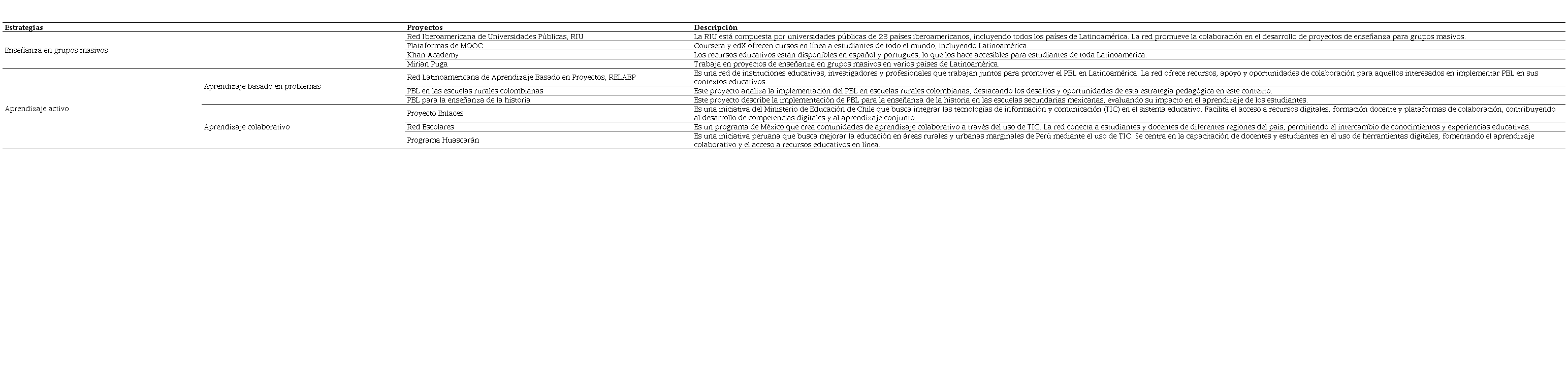 En la Tabla 1 se presentan algunos referentes de las estrategias de enseñanza y aprendizaje, en el contexto de Latinoamérica.