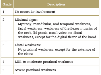 65. Mathieu J, Boivin H, Meunier D, et al. Assessment of a diseasespecific muscular impairment raiting scale in myotonic dystrophy. Neurology 2001;56:336-340.