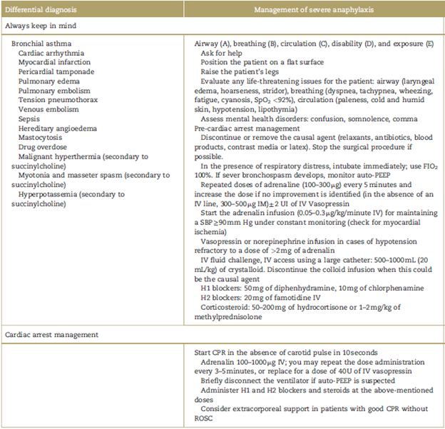 3. Kannan JA, Bernstein JA. Perioperative anaphylaxis: diagnosis, evaluation and management. Immunol Allergy Clin North Am 2015;35:321-334.