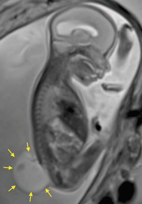 A 27-year-old primigravida at 25 weeks of gestation with fetal diagnosis of open spina bifida (MMC), ventriculomegaly, and Arnold Chiari II syndrome, scheduled for intrauterine MMC correction. Figure 1 shows the magnetic resonance image revealing the extensive fetal vertebral defect. The patient had no relevant personal history and the physical examination found American Society of Anesthesiologists (ASA) Physical Status classification II, weight 84kg, height 169 cm, body mass index 29, blood pressure (BP) 110/70 mm Hg, heart rate 74/min, absent difficult airway predictors, and no abnormal cardiopulmonary findings. Laboratory tests included hemoglobin 12.3 g/dL, prothrombin time (PT) 11.5 seconds, partial thromboplastin time (PTT) 26.2 seconds, fibrinogen 310mg/dL, and platelet count 234,000/µL. The patient and her spouse were explained the anesthetic techniques with their risks and benefits and it was decided to use an epidural catheter for postoperative pain management, and general intravenous anesthesia, and the informed consent was obtained.