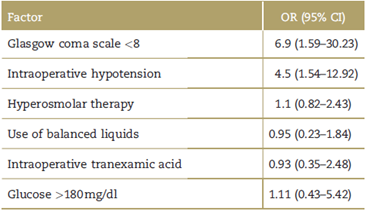 Palabras clave: Traumatismos Craneocerebrales, Periodo Perioperatorio, Hipotensión, Mortalidad, Complicaciones Intraoperatorias.