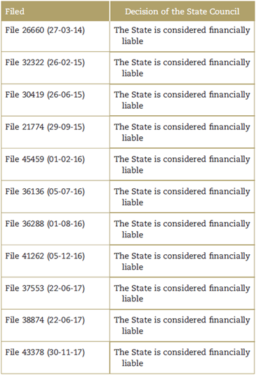 Of the 11 cases analyzed by the SC, the high tribunal revoked 10 of the rulings of the Administrative Tribunal and decided to impose a financial penalty on the State for risks and damages caused to patients; only in 1 case was the decision confirmed, which initially was condemnatory. In these rulings, the underlying premise of the SC was that the interventions or procedures conducted without an IC represent a service failure, and hence the State represented by service provider must be held financially accountable.