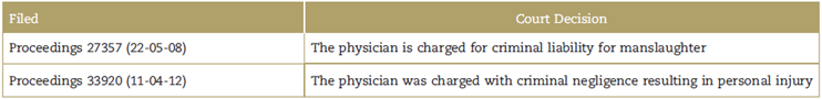 In the 2 above-mentioned verdicts, the Criminal Tribunal of the SCJ ratified the adverse rulings initially awarded: in the first case the physician was charged for manslaughter and in the second case for negligence resulting in personal injury. In these 2 cases, the Court considers that the criminal liability is the result, among other factors, of the fact that physicians failed to educate on the foreseeable risks of the procedures conducted in patients.