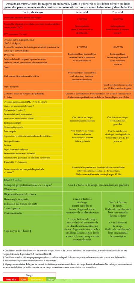 En las tablas 1 y tabla 2 se resumen otros factores de riesgo asociados con la presencia de eventos tromboembólicos venosos durante el embarazo y puerperio.