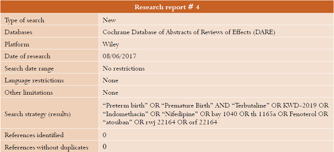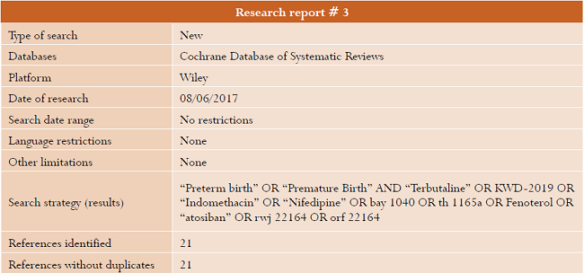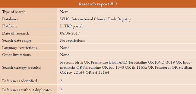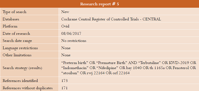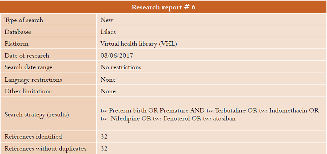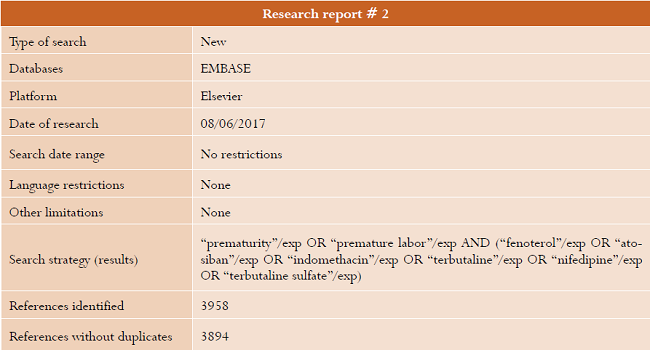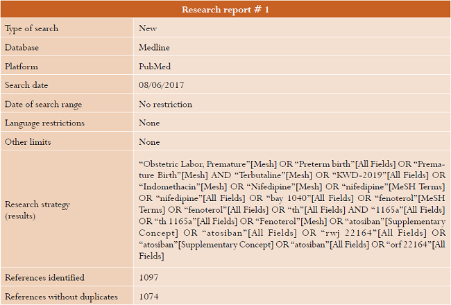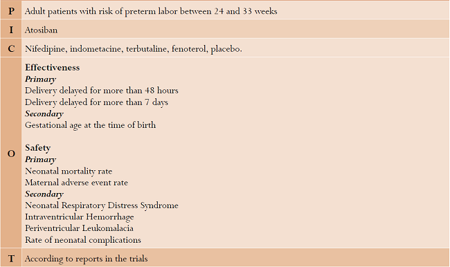 How complete was the review in terms of the information obtained in terms of outcomes? Wide screening of the literature is designed to identify all the relevant data available in manuscripts published in journals or registry reports. It may be argued that the limitation in terms of gestational age between 24 and 33 full weeks may have limited the scope of the conclusions of this research, given that it meant that some studies were not included. However, we believe that this makes this review relevant for the local context, given that it focuses on the literature pertaining to the population for which atosiban is indicated in our setting.