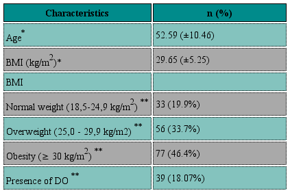 At the time of surgery, mean age was 52.59 years (SD ± 10.46), mean BMI 29.65 kg/m2 (SD ± 5.25), 133 (80.1%) had a BMI ≥ 25 kg/m2. They had a median of 3 (IQR ± 2) previous pregnancies and a median of 2 (IQR ± 1) vaginal deliveries. Eighty-four (50%) patients underwent urodynamic testing before surgery for stress-predominant mixed incontinence, and 30 (18,07%) were found to have Detrusor overactivity (DO) (Table 1).