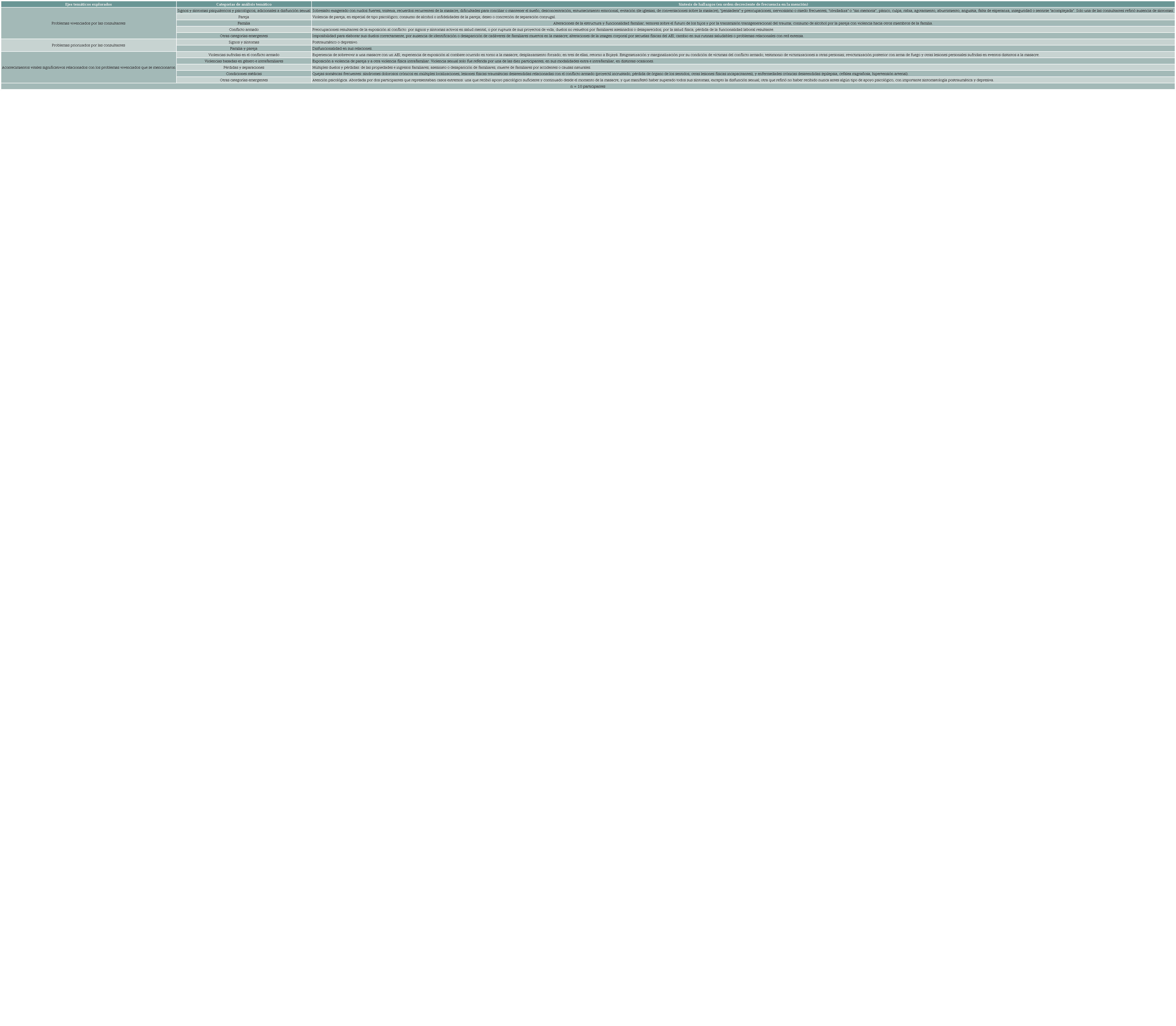 Cuatro de ellas especificaron que sus problemas familiares y de pareja hacían referencia a algún tipo de violencia intrafamiliar. La mujer 3 indicó que sufría violencia psicológica ejercida por su pareja: "Muchas peleas, me siento subestimada por él". Finalmente, la mujer 5 indicó sufrir constantes violaciones de sus derechos humanos básicos en general, y sexuales en particular, de parte de su marido: "Mi esposo era bien, luego me pordebajeaba, me ha sido infiel muchas veces".