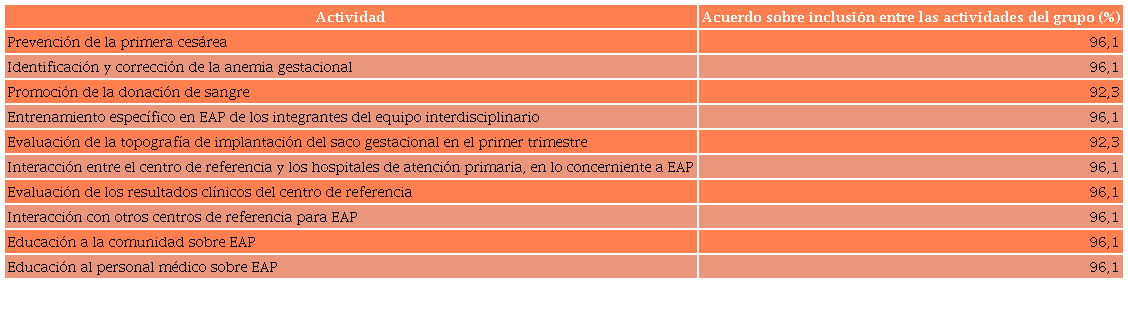 Conclusions: It is our hope that this first Colombian consensus on PAS will serve as a basis for additional discussions and collaborations that can result in improved clinical outcomes for women affected by this condition. Additional research will be required in order to evaluate the applicability and effectiveness of these recommendations.