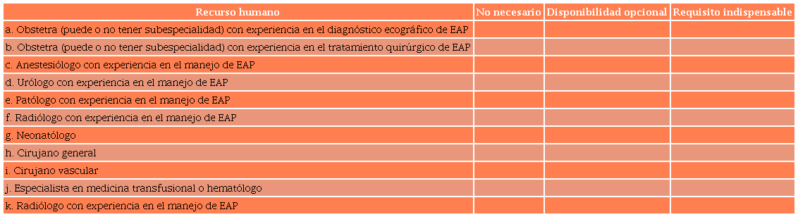a) Es indispensable su disponibilidad en la mesa quirúrgica durante el manejo de todas las pacientes con EAP.
