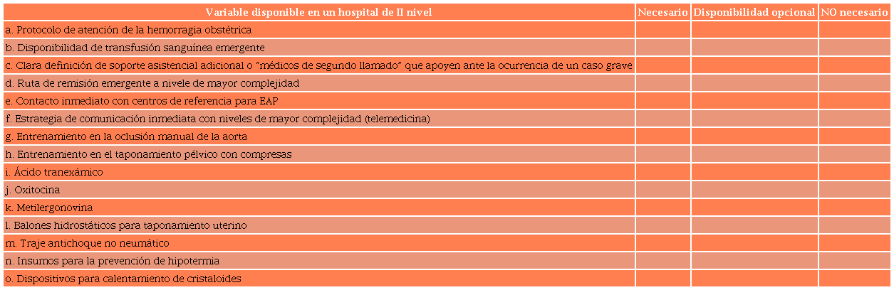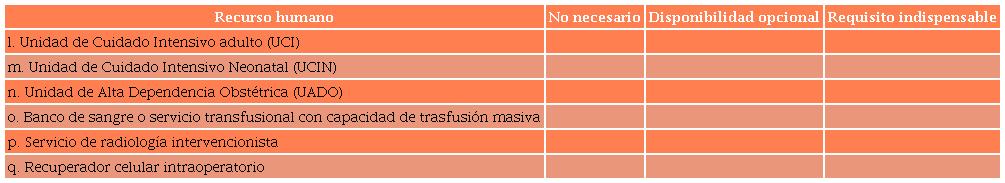 Las condiciones descritas para que un hospital sea reconocido como centro de excelencia para EAP son muy exigentes y difíciles de cumplir en escenarios de recursos limitados 29,34,37. Algunos de los requisitos propuestos por guías internacionales se relacionan con estrategias de manejo utilizadas rutinariamente en algunos hospitales (como el uso de radiología intervencionista o cirujanos vasculares), pero nunca en otros centros (por ejemplo, en hospitales donde el control vascular se reserva para casos graves, aplicando balones aórticos por cirujanos de trauma o compresión manual de la aorta). Lo anterior pone de manifiesto que los requisitos para la atención protocolizada y segura de mujeres con EAP pueden variar según la estrategia de manejo empleada en cada hospital.
