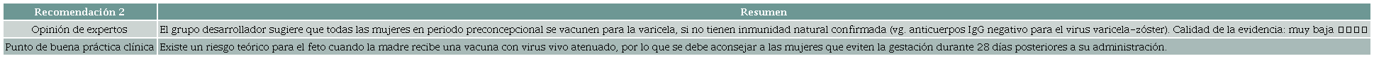 ¿Cuáles son la seguridad y la efectividad de la vacunación contra la varicela en el periodo preconcepcional?