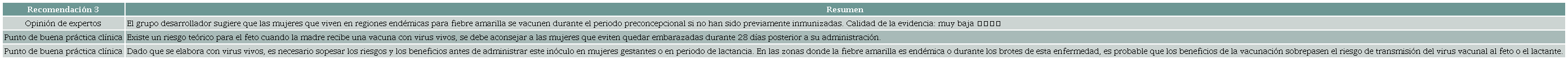 Considerando la calidad de la evidencia, toda vez que los beneficios de la intervención pueden superar los riesgos potenciales de la misma, teniendo en cuenta que este inóculo se encuentra disponible en el territorio colombiano como parte del programa ampliado de vacunación para la población objetivo, y dado que la representante de los pacientes tomó una postura a favor del curso de acción, el grupo desarrollador optó por emitir una recomendación débil a favor. El acuerdo alcanzado fue del 100 % para este punto.