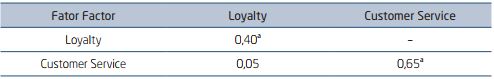Still, according to Brown (2015), the fact that the factors display low correlation corroborates the existence of two genuinely different factors. In short, the results show that the strategies to obtain customer's loyalty differ conceptually from the strategies of customer service: two different factors that compose the construct "perception of relationship", whose validity was attested.