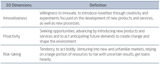 Table 1 presents a brief definition of EO dimensions according to Miller (1983).