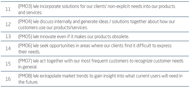 The PMO’s main characteristic is to identify and anticipate needs, not only consumers’ needs, but also market needs as a whole and offer solutions through product and service innovation (Narver et al., 2004).