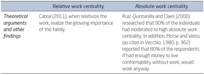 For this sample, work centrality is high, but when balanced with family, shows equilibrium. In other words, there is balance between family and work with a high involvement of the individual with work. This finding reflects Dejours’ (2009) contemporary perception of work and aligns with the findings of Kuchinke et al. (2009).