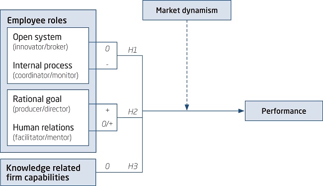 The propositions in this article have to be seen as expectations, because of the explorative character of the research. Propositions 1 and 2 deal with the strategic fit between employees and market dynamism: the moderation of the role-mix by market dynamism. Proposition 3 deals with the indifferent relationship of knowledge related firm capabilities and market dynamism.