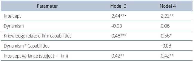 Capabilities and competences are not analyzed together, because of mutual dependency. To test fit, we introduced interaction terms in a second step. In line with Venkatraman (1989), we took moderation as the interaction effect, because the research model has a clearly set out number of variables and specific selection criteria.