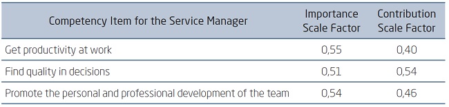 It should be noted that it was not possible to perform the factorial analysis of the executive managers, considering the answers given by the 30 executive managers in relation to the importance perceived by the course to the development of competences and how much the courses allowed the domain of professional competences be related to the work. This is because sufficient variability (small sample) was not found.