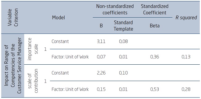 After the presentation of the empirical results regarding both the evidence of the validity of the questionnaire used and its theoretical dimensions, as well as the statistical regression models, the standard of answers was analyzed among the 291 respondents considering the unit of stocking of the same ones. Basically, ANOVA (analysis of variance) was performed considering as parameter two functions: commissioned function of executive manager and function of manager of the service.