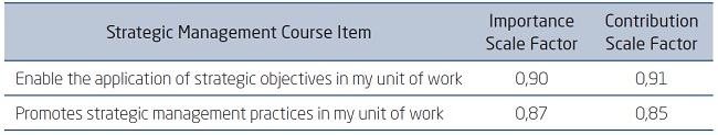 When comparing the two types of function in relation to the assessment of contribution and importance of the strategic management course, it was identified that service managers and executive managers differed in relation to strategic importance assessments (F (1,289) = 7, 12, p = 0.01), and for the evaluation of the contribution of the strategic management course, (F (1,289) = 6.43, p = 0.01).
