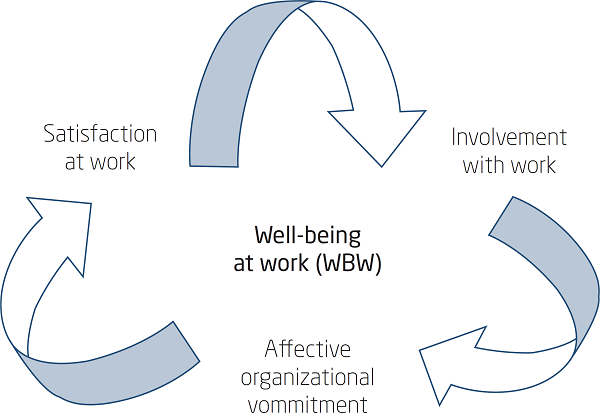 Siqueira and Padovam (2008), based on the postulates of Seligman and Csikszentmihalyi (2000), constructed a theoretical model for WBW. The construct is based on three seminal concepts of the positive and pleasurable connotations in the work environment: satisfaction at work (Locke, 1976); involvement with work (Lloyd & Kejner, 1965) and affective organizational commitment (Mowday, Steers, & Porter, 1979). The authors, by integrating into said constructs, advanced at the same, since they have positive emotional connotations, pleasurable sensations and are pleasant, related to the organizational context. It is a positive state of mind experienced by the worker, through aspects present in the work environment (satisfaction and involvement with work) and positive feelings to the employer organization for having identified with the values and the ethics of it (affective commitment organizational).