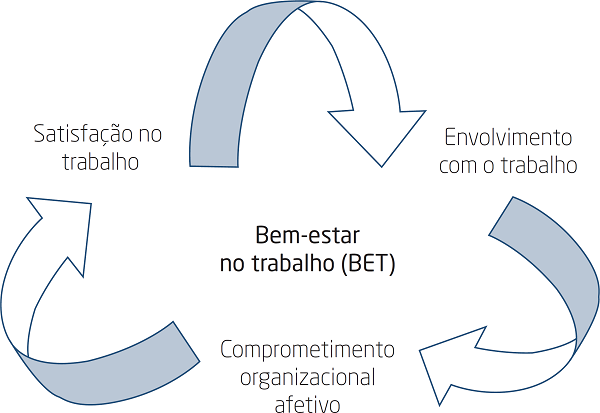 The first component of WBW, satisfaction at work, is defined by Siqueira and Padovam (2008) as a positive affective bond with work. The authors validate Siqueira and Gomide Jr. (2004) by pointing out that the pleasant evaluations have specific aspects obtained in the relationships with managers and colleagues, with the satisfaction provided by the salary paid by the company, as well as with the promotional units and their contentment with the tasks performed.
