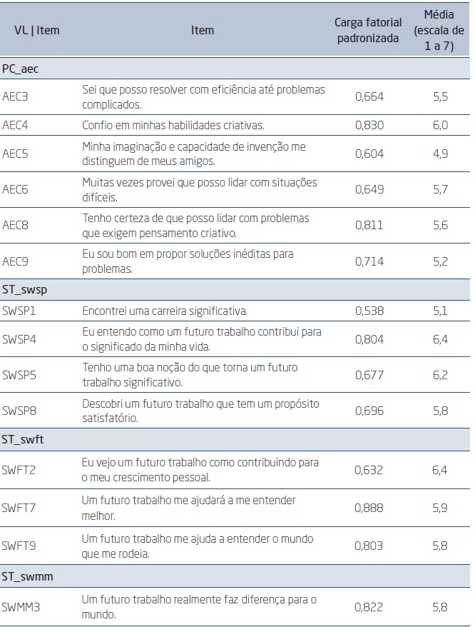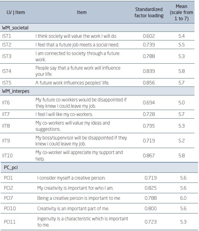 This study also contributes to the literature, offering three new valid and reliable measuring instruments for the following constructs: creative self-concept, importance of work and meaningful work.