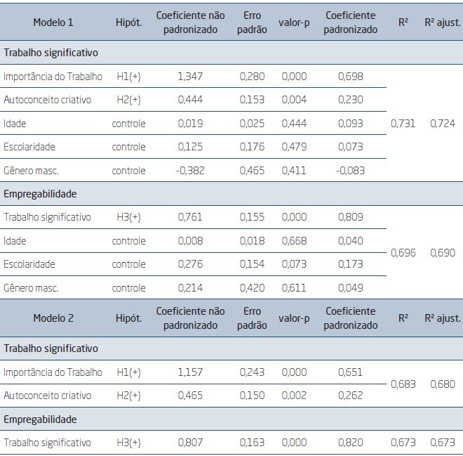 PALAVRAS-CHAVE: Trabalho significativo, Autoconceito criativo, Importância do trabalho, Empregabilidade, Modelagem de equações estruturais.