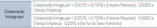This topic presents the four results of the study. It is worth saying that these results consider cooperation as a dimension subdivided into intra group cooperation and cooperation among groups.