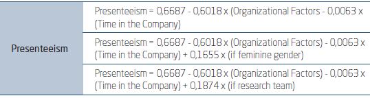 Gender also appears as a dimension of influence, and allows identifying that, in the reality of the organization studied, presenteeism is more perceived among women. Likewise, the model shows that presenteeism tends to be more frequent in research teams than in support teams.