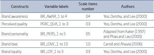 To measure the constructs from the chosen scales, it was opted by using a seven-point Likert scale, where the extremes varied from 1 (“totally disagree”) to 7 (“totally agree”). It is stressed that this kind of scale has proven its applicability in a variety of research environments, including some related to brand loyalty context (Das, 2014; Khan & Rahman, 2016). As for the investigated constructs operationalization, their respective scales are presented in Figure 3.1: