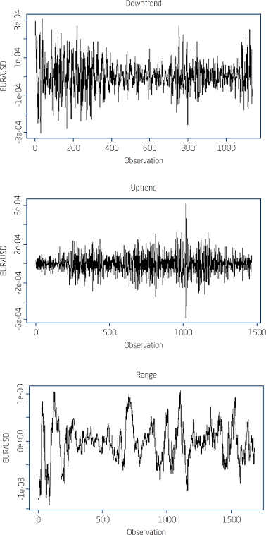 However, it is important to highlight that, unlike the stock market, for the most part and especially with regard to the EUR/USD pair, the frequency and impact of news on FOREX occurs on a global and not local scale. In view of this aspect of the exchange rate market, we discharged from sample 3, four outliers resulting from the disclosure of economic news and/or reports (GDP, personal spending, core PCE price index, ISM manufacturing, ADP employment survey, FOMC - fed funds rate,sovereign debt to be rated, PMI, among others).