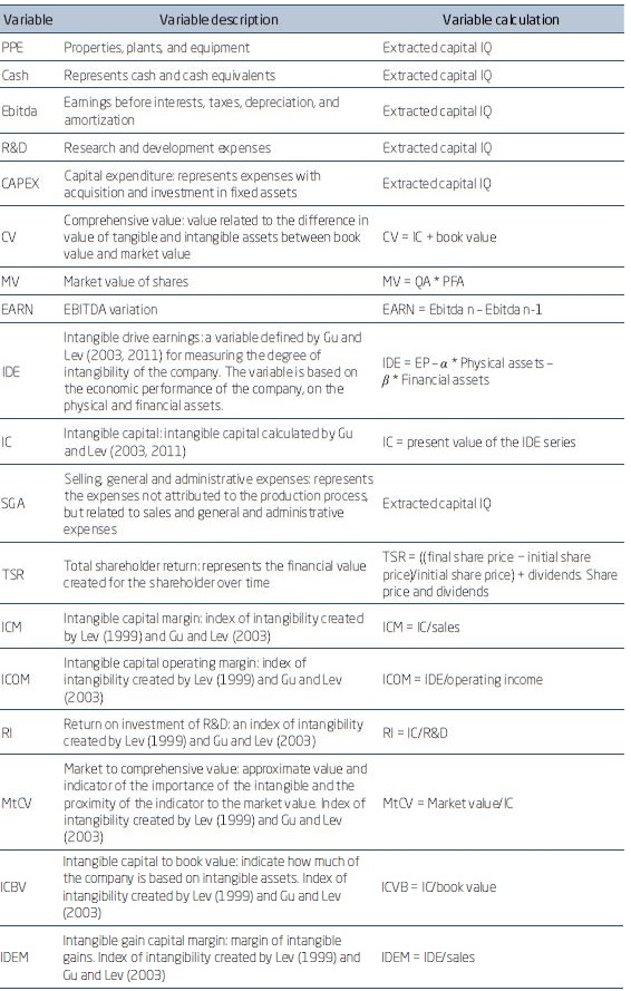 According to Figure 3.2.1, for this work, the variables of the database were considered for the purpose of analyzing the intangibility of companies (Basso et al., 2015).