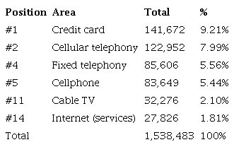 Operators had accelerated growth in their customer bases, accompanied by an increase in the volume of lawsuits filed with consumer protection agencies, including on Anatel’s own website. In 2011, complaints about services provided by cellular operators represented 7.99% of the total demands, submitted to public consumer protection agencies belonging to the National Consumer Protection System (Sindec), which was part of Procon (Consumer Protection Agency) from 25 Brazilian states. This percentage was surpassed only by the numbers of the credit card industry, which reached 9.21%.