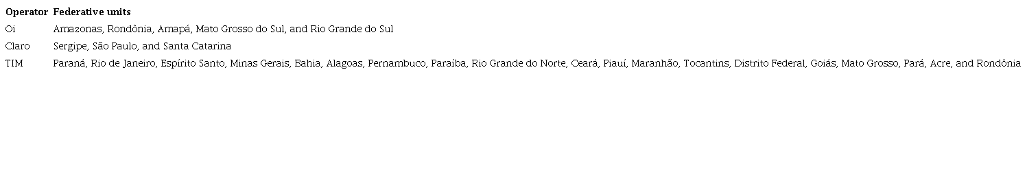 Due to this situation and still motivated by the various actions demanded by the Public Prosecutor’s Office and Procon from several states, the Federal Justice, in addition to the pressure exerted by the Federal Audit Court, the Ministry of Communications, and the Presidency of the Republic, Anatel decided to prohibit operators TIM, Claro and Oi from selling accesses across the country, as of July 23, 2012. In each federative unit, an operator had its sale prohibited, as shown in Figure 5.2.
