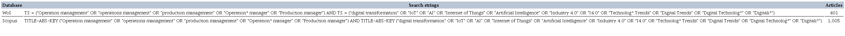 Among so-called digital technologies, artificial intelligence (AI) and the internet of things (IoT) have excelled (Brock & Wangenheimz, 2019; Özdemir & Hekim, 2018; Saarikko et al., 2020; Sestino et al., 2020). However, although many studies mention the benefits of these digital technologies (Balakrishnan & Das, 2020; Ross et al., 2019b), they still lack a demonstration of how the benefits of AI and IoT can be obtained in operations management (OM). In March 2021, a preliminary survey was conducted on the Web of Science (WoS) database using the keywords “artificial intelligence” and “IoT”. The results of this search showed that of the 627 publications extracted, only 1% referred to the OM’s area (Dhamija & Bag, 2020). Analyzing the results through VOSviewer software, it was noticed that the connection between AI and IoT and the OM’s area was through industry 4.0 (i4.0) (Ahuett-Garza & Kurfess, 2018; Fettermann et al., 2018). The strengthening of i4.0 and the rapid technologies’ development in the management sectors as a way of generating new values (Albertin & Moura Albertin, 2021) highlight the importance of digital transformation, in which the use of new technologies is important (Lohmer & Lasch, 2020; Schiavone & Sprenger, 2017).