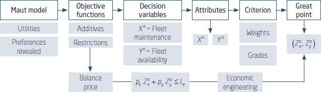 The option choice to use the Maut intends to incorporate multiple objectives and the managers’ preferences into the problem. Also, it uses a discrete method with several discrete alternatives in the choice for the leased fleet, employing weights and scores to attributes using a mathematical function. The attributes refer to characteristics and management topics considered relevant by the managers, therefore revealing their preferences.