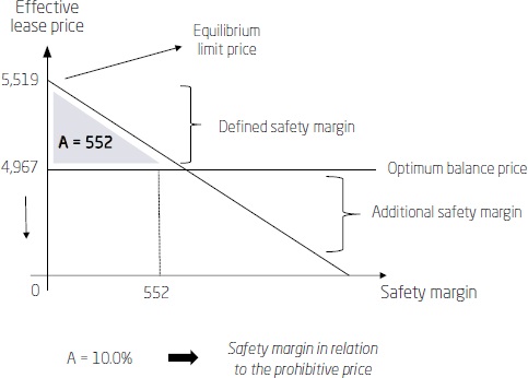 The safety margin was defined as an insurance against adversities and unexpected situations, such as breach of contracts. The parameter used to define the margin was also the historical percentage of unserviceable cars. With a percentage over the PL T, the state would have a margin of safety for the risks involved. The optimal price would be the limit price minus the safety margin.