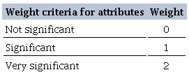 The decision-makers defined the attributes in Table 1 with the weights for each criterion according to Table 2, creating, from the sum of the attributes for each decision variable, Xª and Yª.