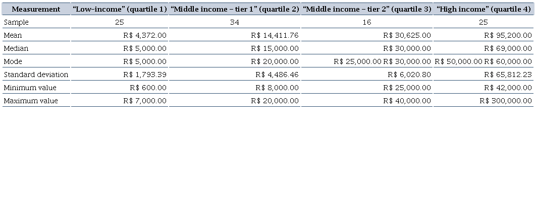 The magnitude of revenue was used to recognize the classification as an MPE. In this sense, according to Serviço Brasileiro de Apoio às Micro e Pequenas Empresas – Sebrae (2021), there are four categories of small businesses: individual microentrepreneur (annual revenue of up to R$ 81 thousand), microenterprise (annual revenue of up to R$ 360 thousand), small business (annual revenue between R$ 360,000 and R$ 4.8 million) and small rural producer (property with up to four fiscal modules or revenues of less than R$ 4.8 million) (Sebrae, 2021).
