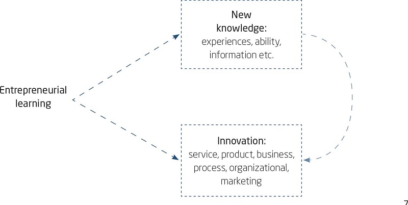 The continuous learning process (Sacramento & Teixeira, 2019) and the knowledge sharing, through the transmutation of experiences, skills, and information into practices, enable the development of innovation in the areas of services, products, processes, business models, and organizational schemes (Castaneda & Cuellar, 2020). With this, it is understood that the development of business activities relies on the skills application, know-ledge, and entrepreneurs’ attributes, which can both derive from others and can result from their direct learning results (Man, 2012); thus, entrepreneurial learning effectively improves innovation processes (Deakins & Bensemann, 2018).