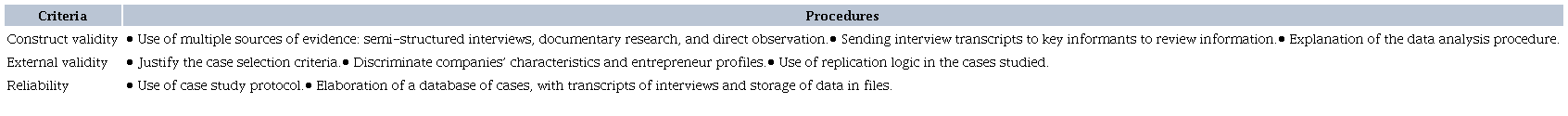 To meet the validity and reliability criteria recommended by Yin (2015), Table 2 presents the procedures adopted in this research.