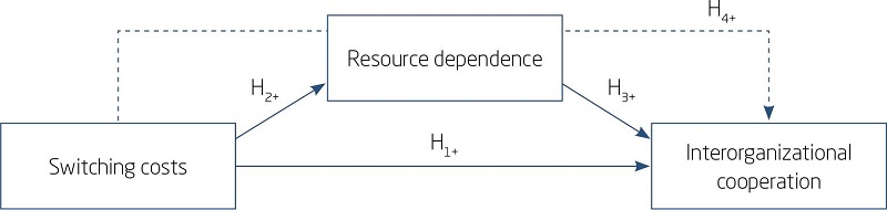 H4: Resource dependence positively mediates the relationship between switching costs and interorganizational cooperation of contractors and transport companies.