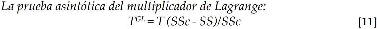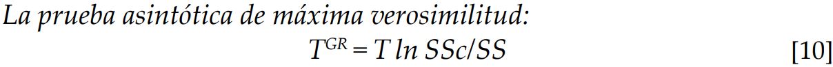 Para probar la hipótesis Ho: Y no causa a X y para una particular identificación del número de rezagos, se formulan dos especificaciones para la segunda ecuación del modelo de corrección error: Ecuación sin restricción (SS):